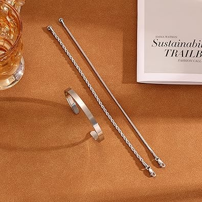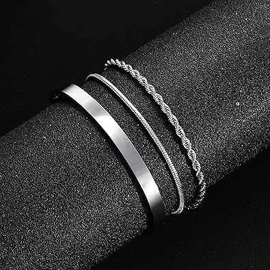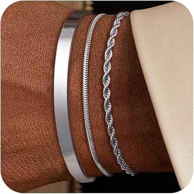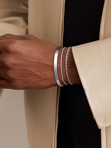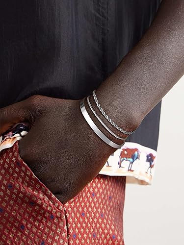 - 3Pcs LAYERED BRACELETS: Dainty silver men bracelets have a trendy and delicate design, which Include cuff chain, snake chain and rope chain.They are suitable for stacking as well as being worn alone