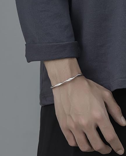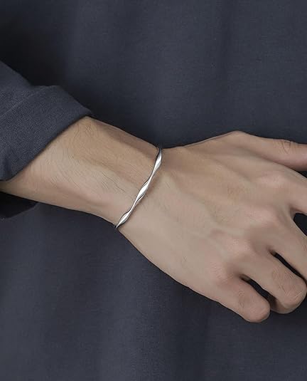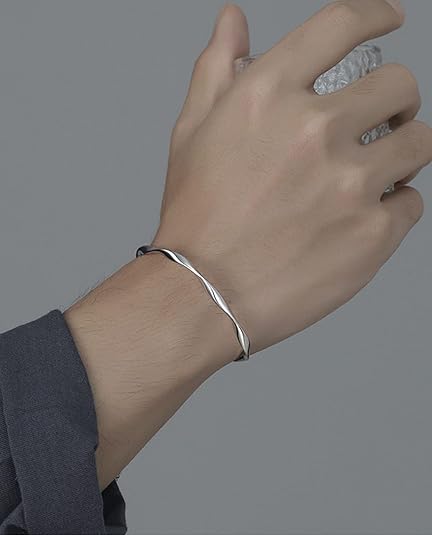 Sterling Silver Bracelet, Open Bangle Cuff Design, Men's Gift Jewelry for My Man